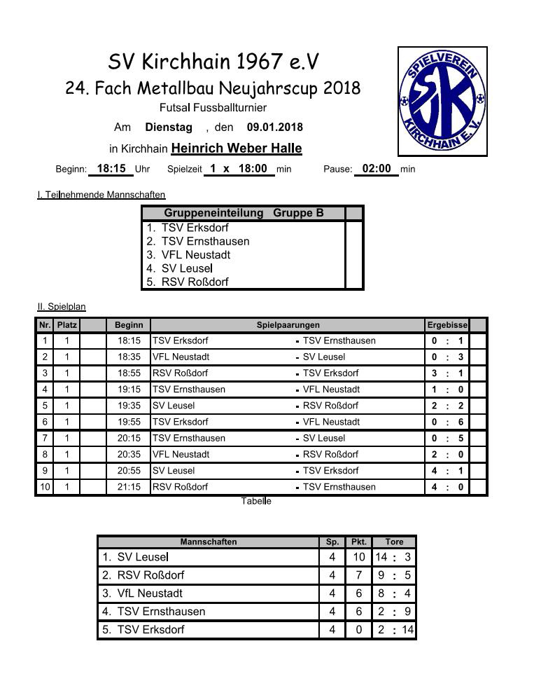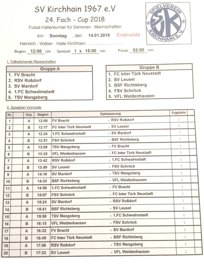 Fach-Metallbau Neujahrs-Cup 2018 ab 08.01.2018 in Kirchhain