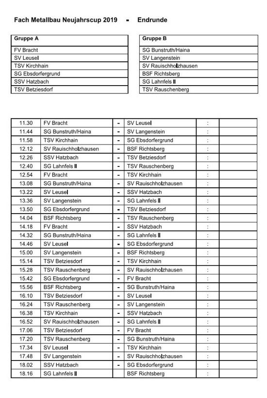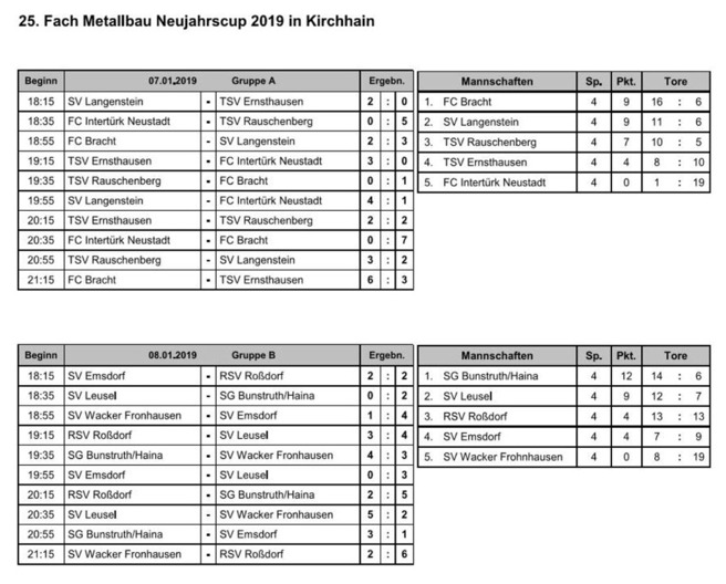 Fach-Metallbau Neujahrs-Cup 2019 in Kirchhain